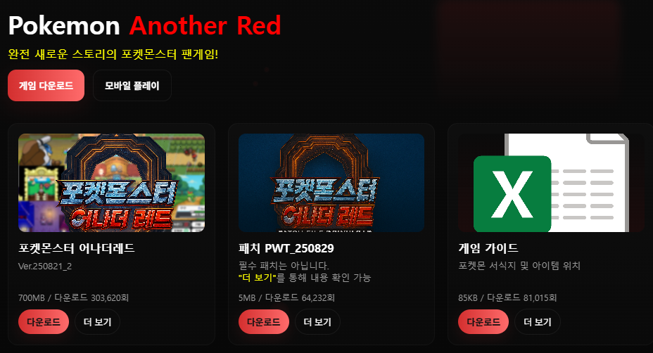 2. 게임 다운로드 페이지에서 "포켓몬스터 어나더레드"를 다운로드 합니다.